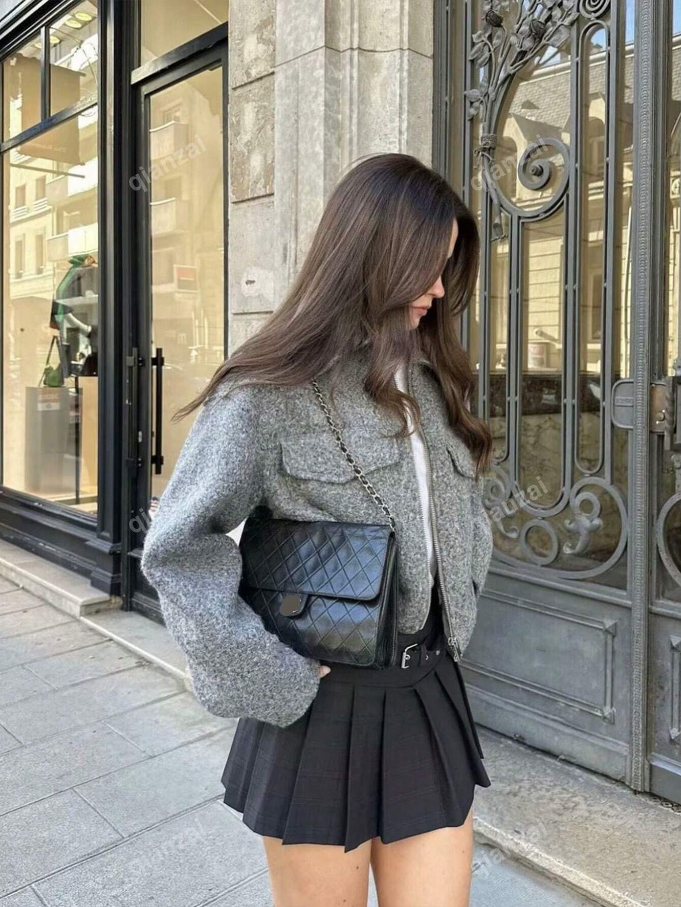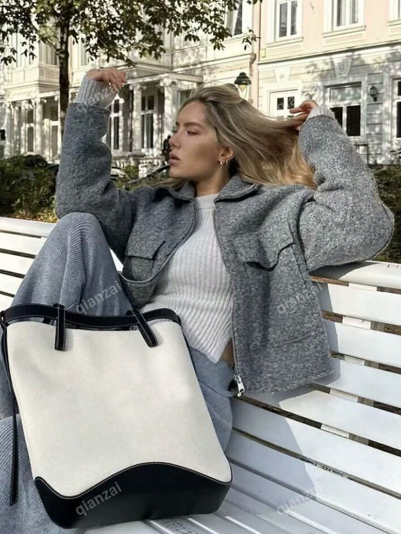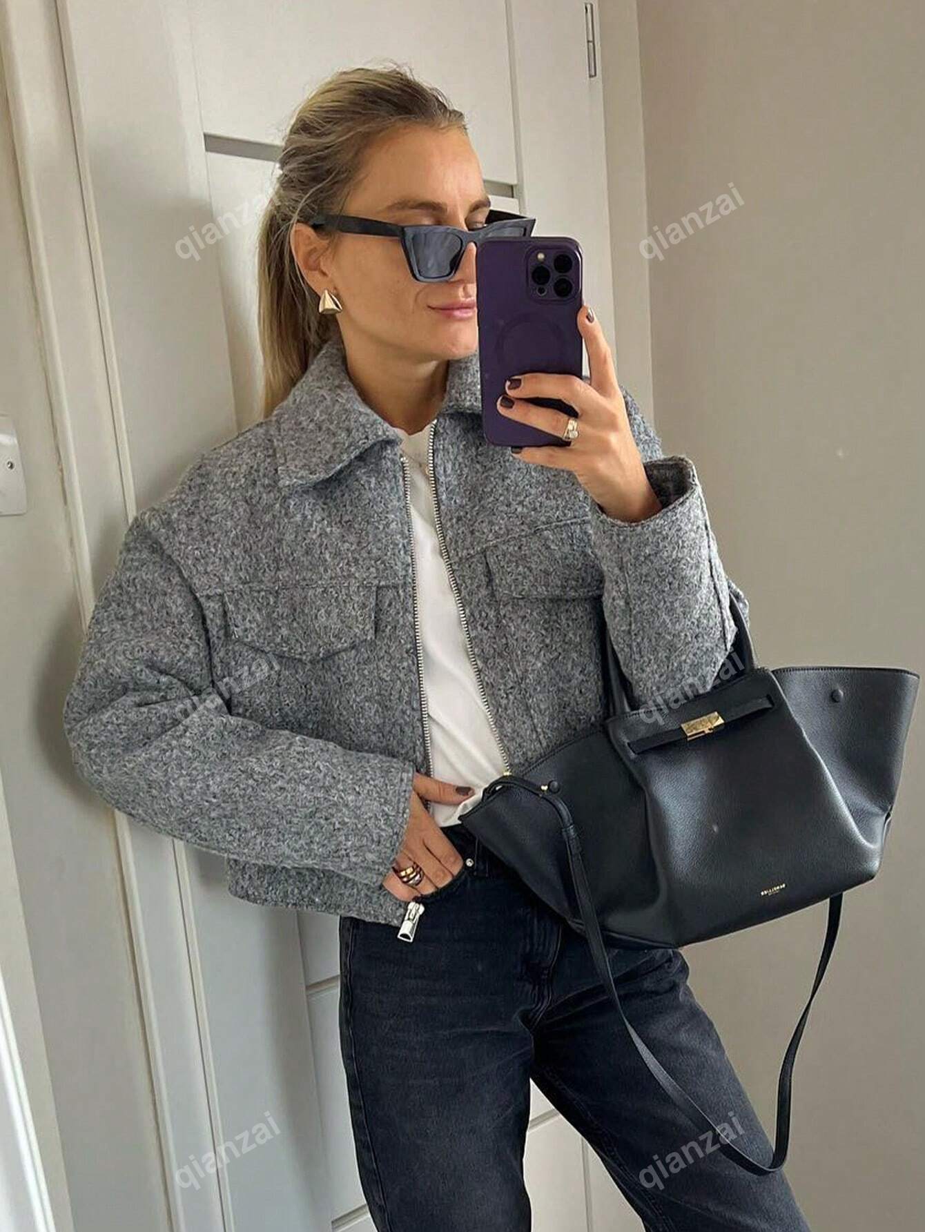 Women Elegant Solid Jacket Front Pocket Long Sleeve Zipper Jackets Coat
