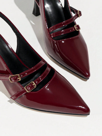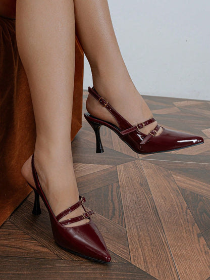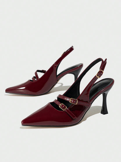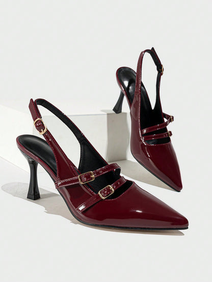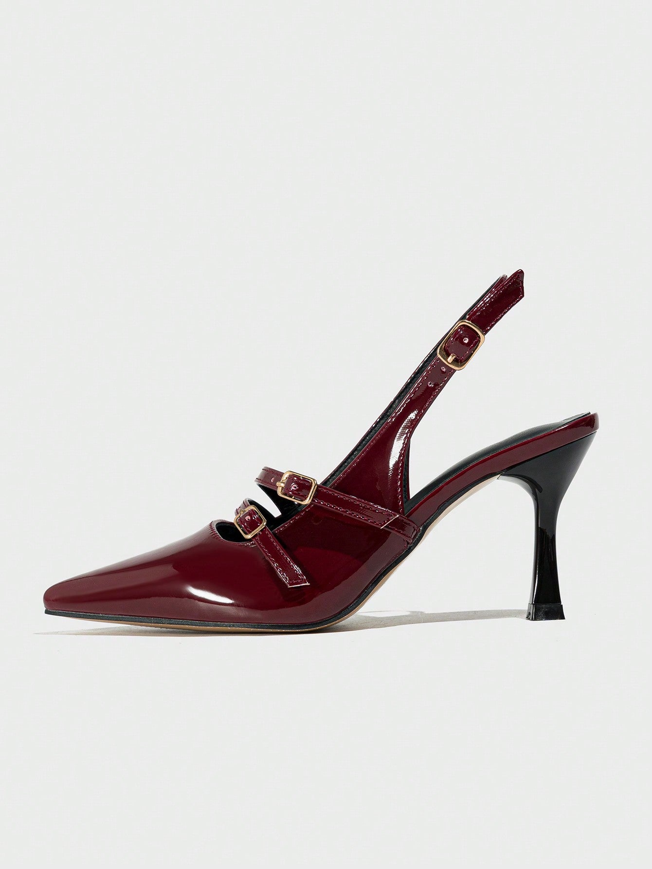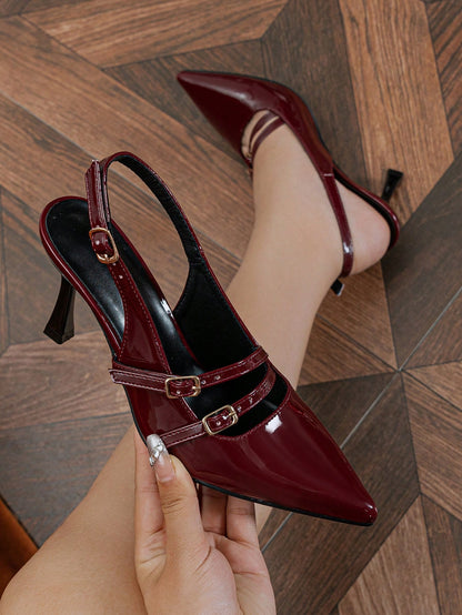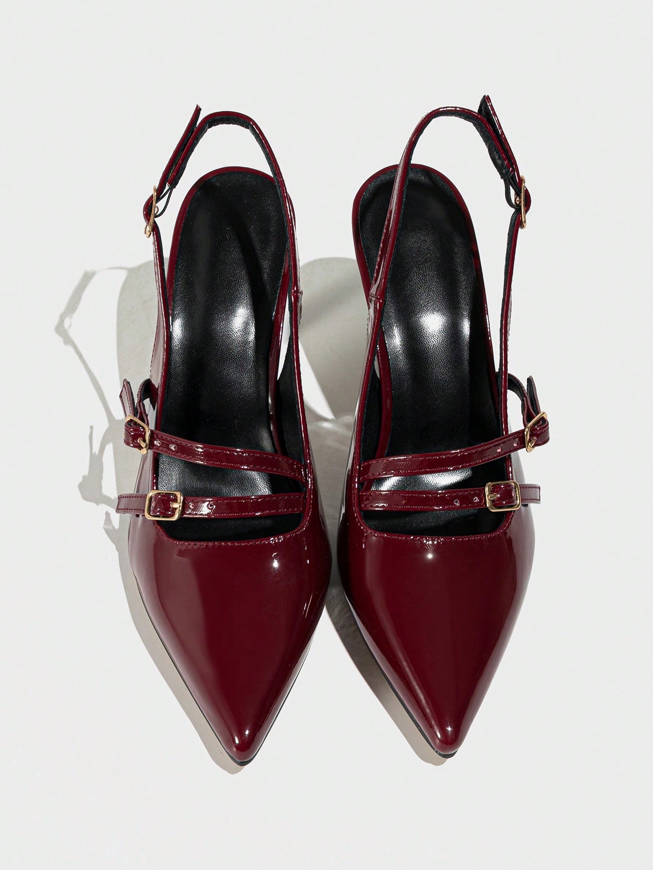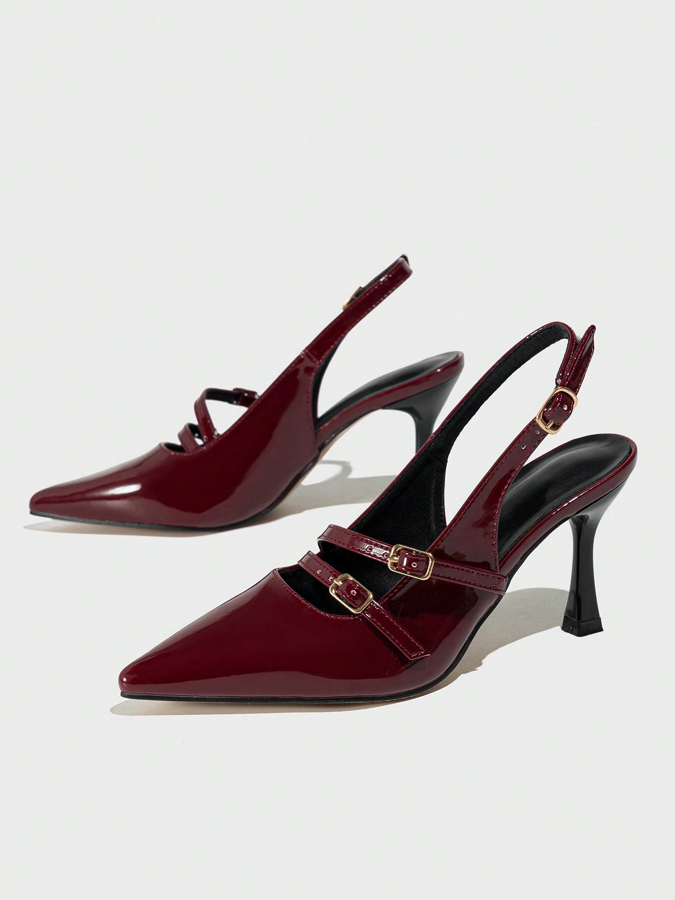 Women High Heel Single Shoes With Thin Heels, Pointed Toes, Multiple Buckle Straps And Back Straps