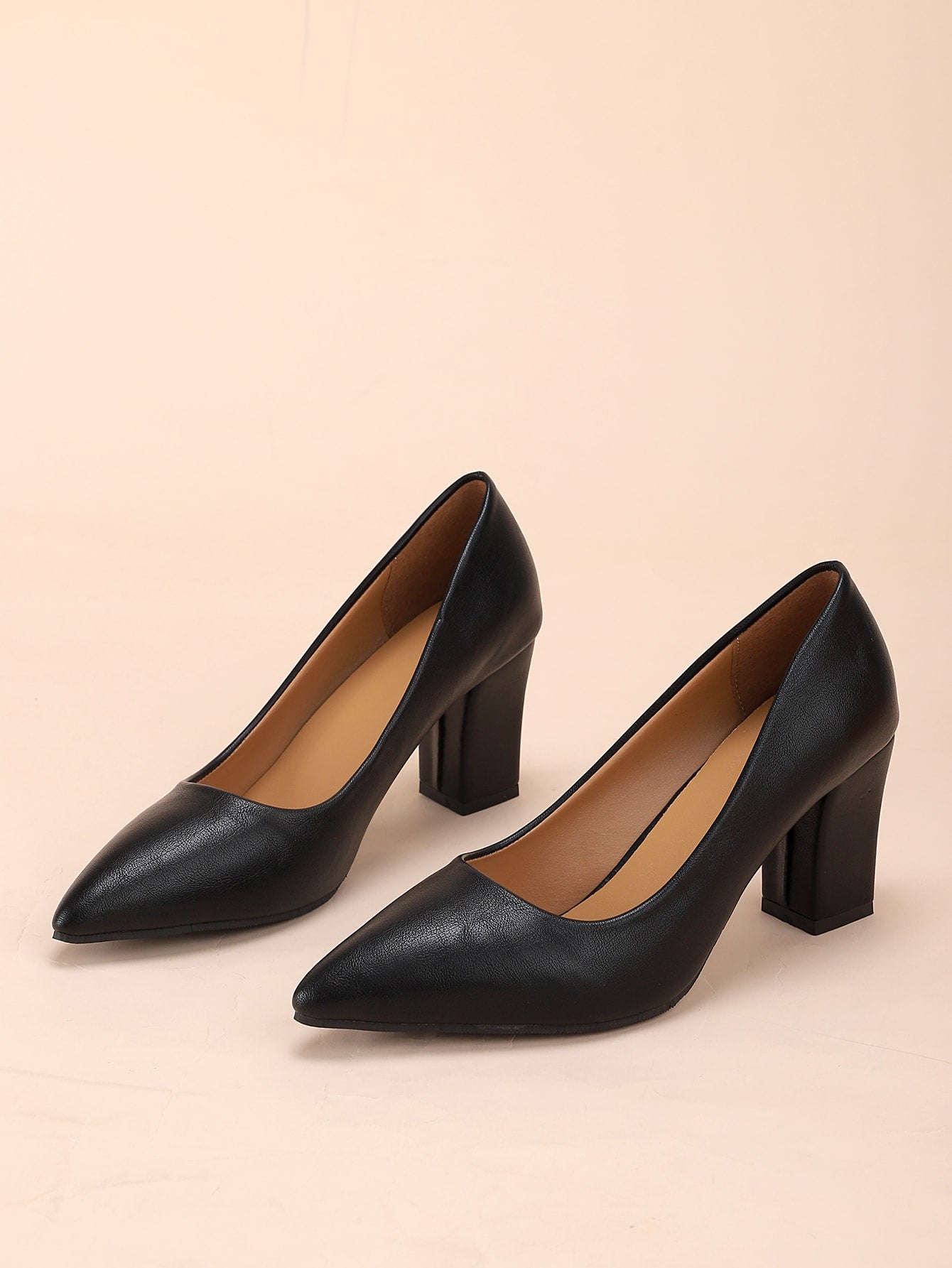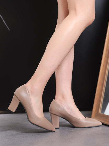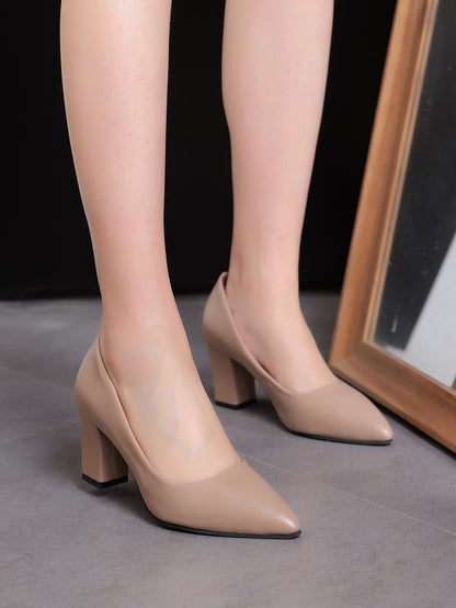 Women Point Toe Chunky Heeled Pumps, Elegant Apricot Court Pumps