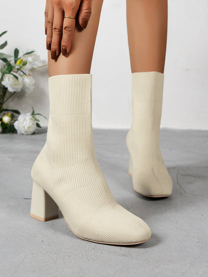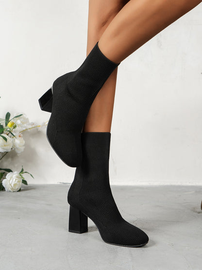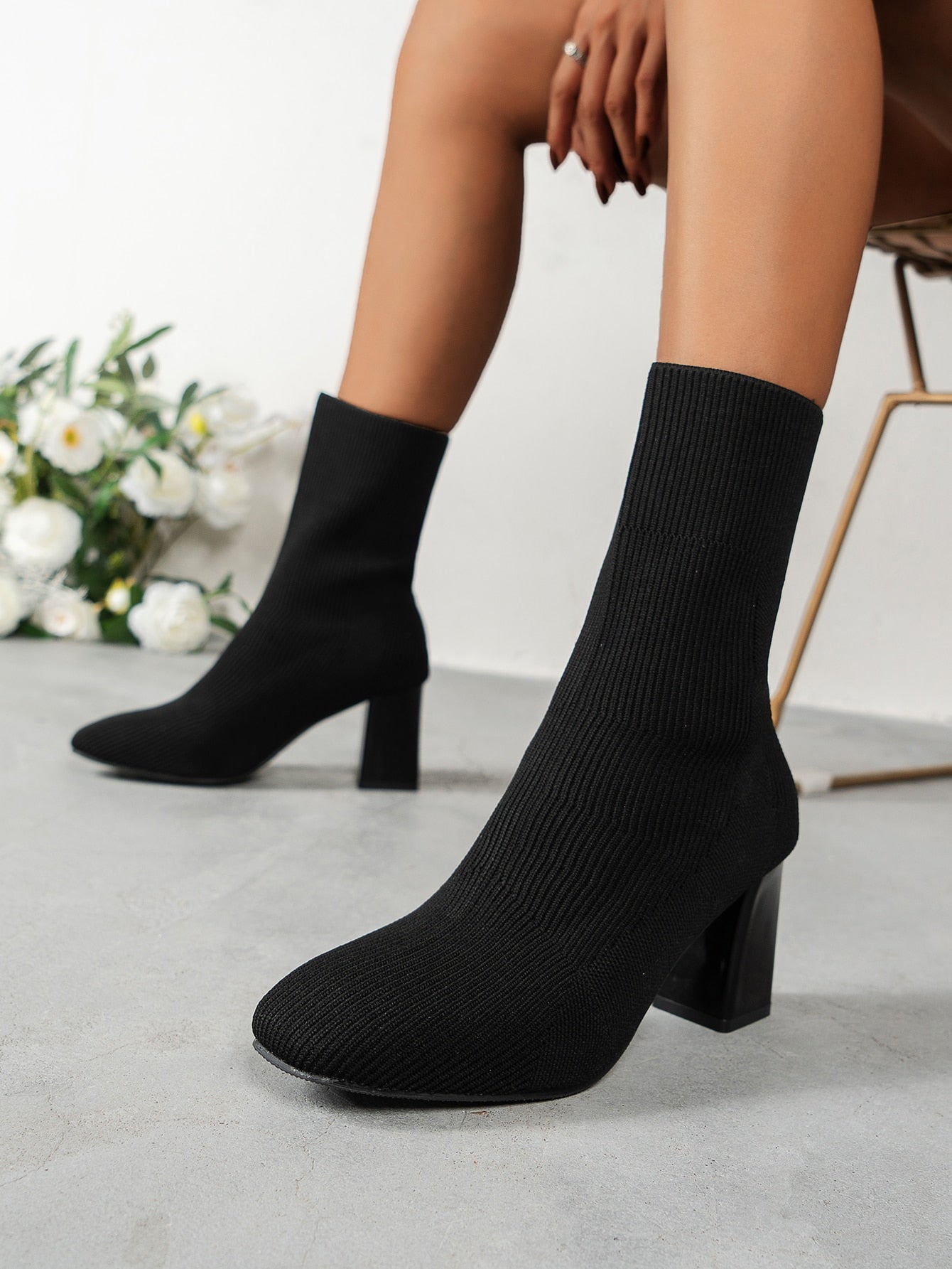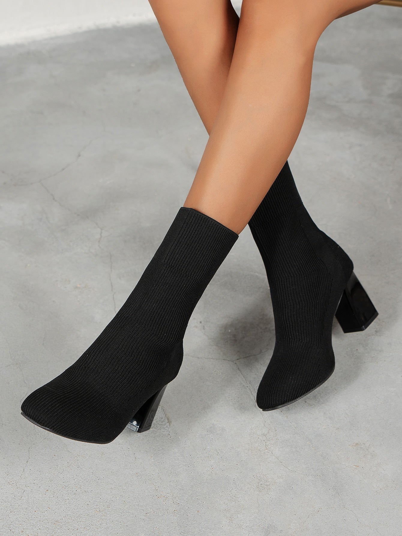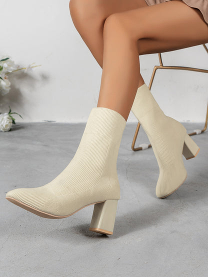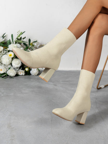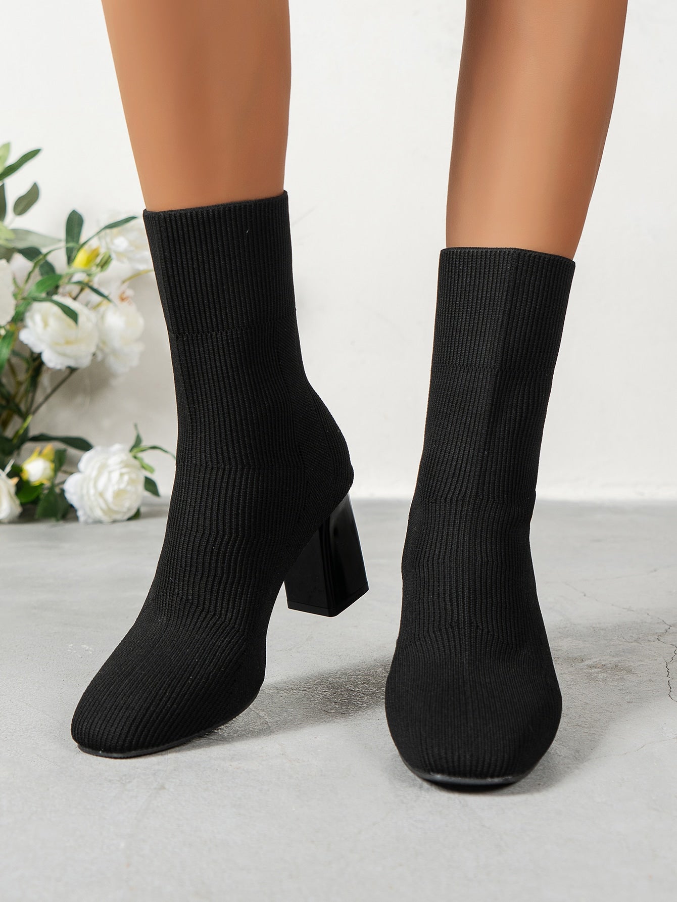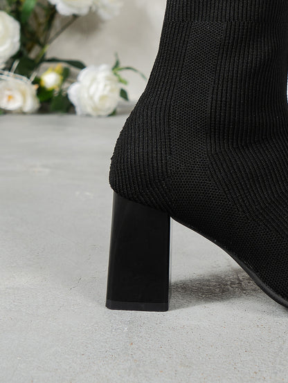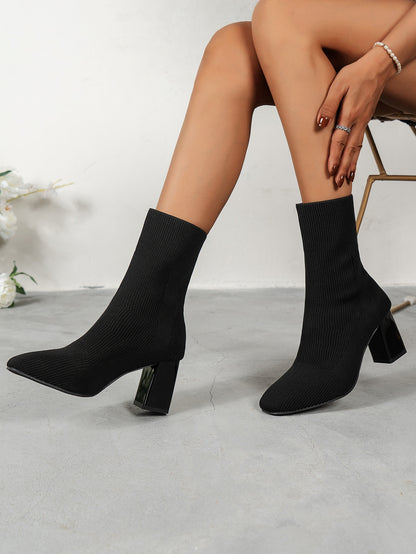 Women Point Toe Minimalist Chunky Heeled Slip-On Sock Boots