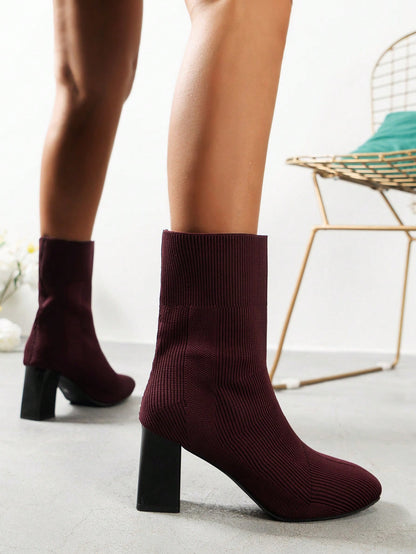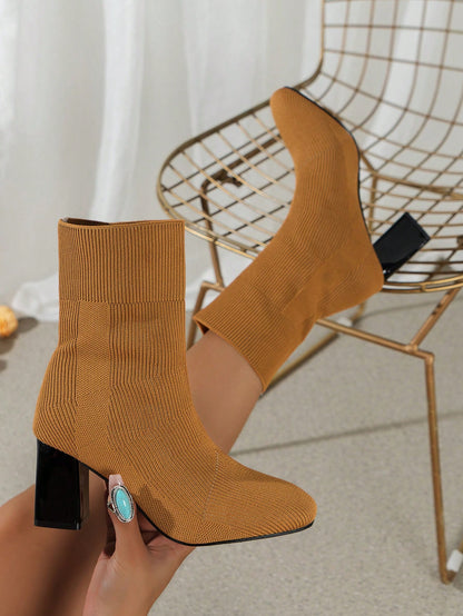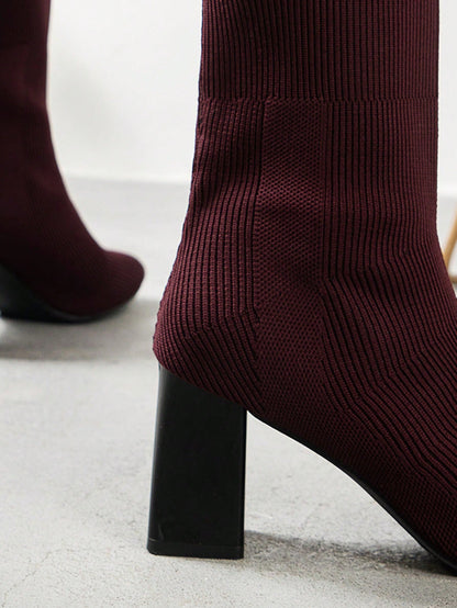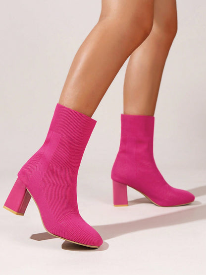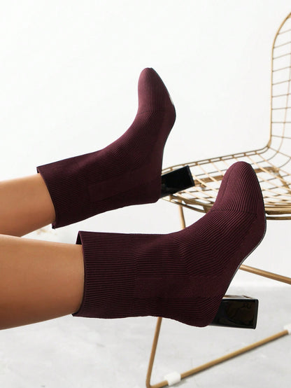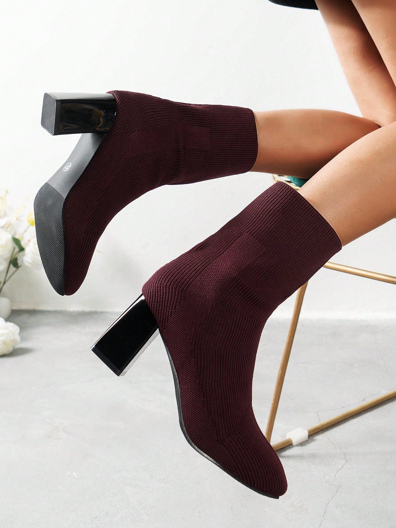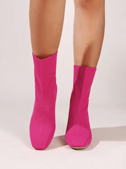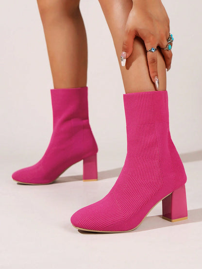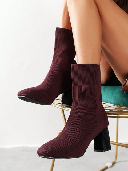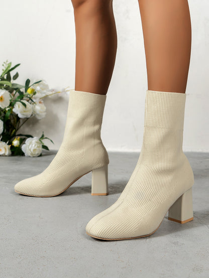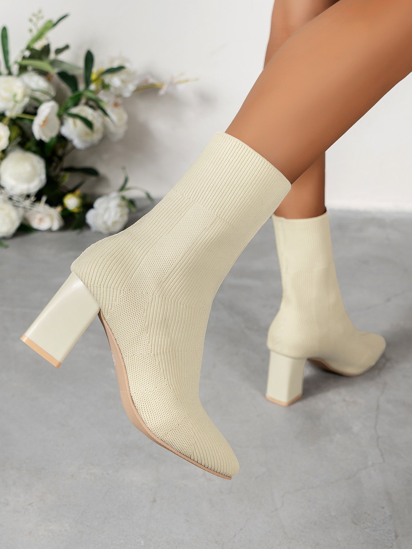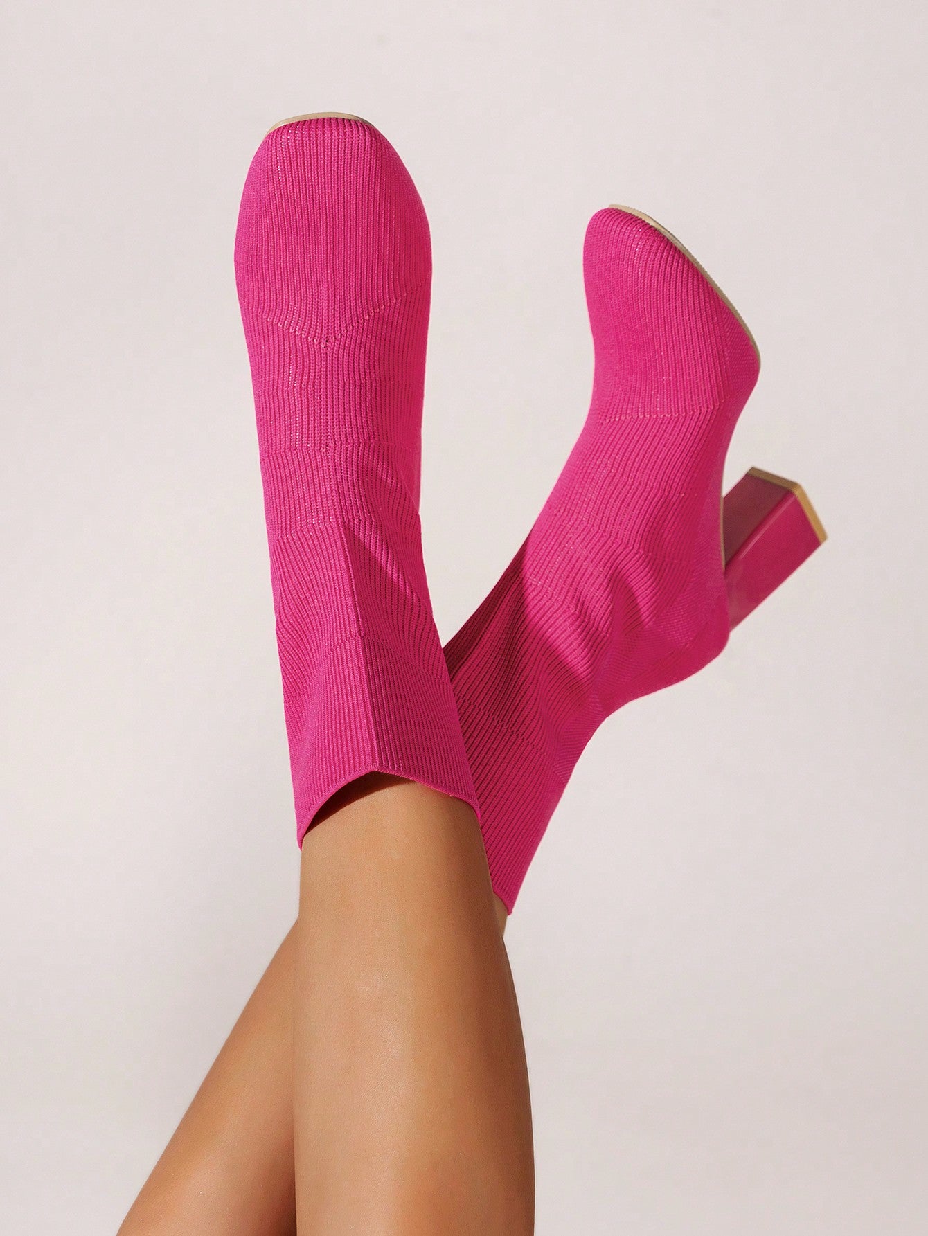 Women Point Toe Minimalist Chunky Heeled Slip-On Sock Boots