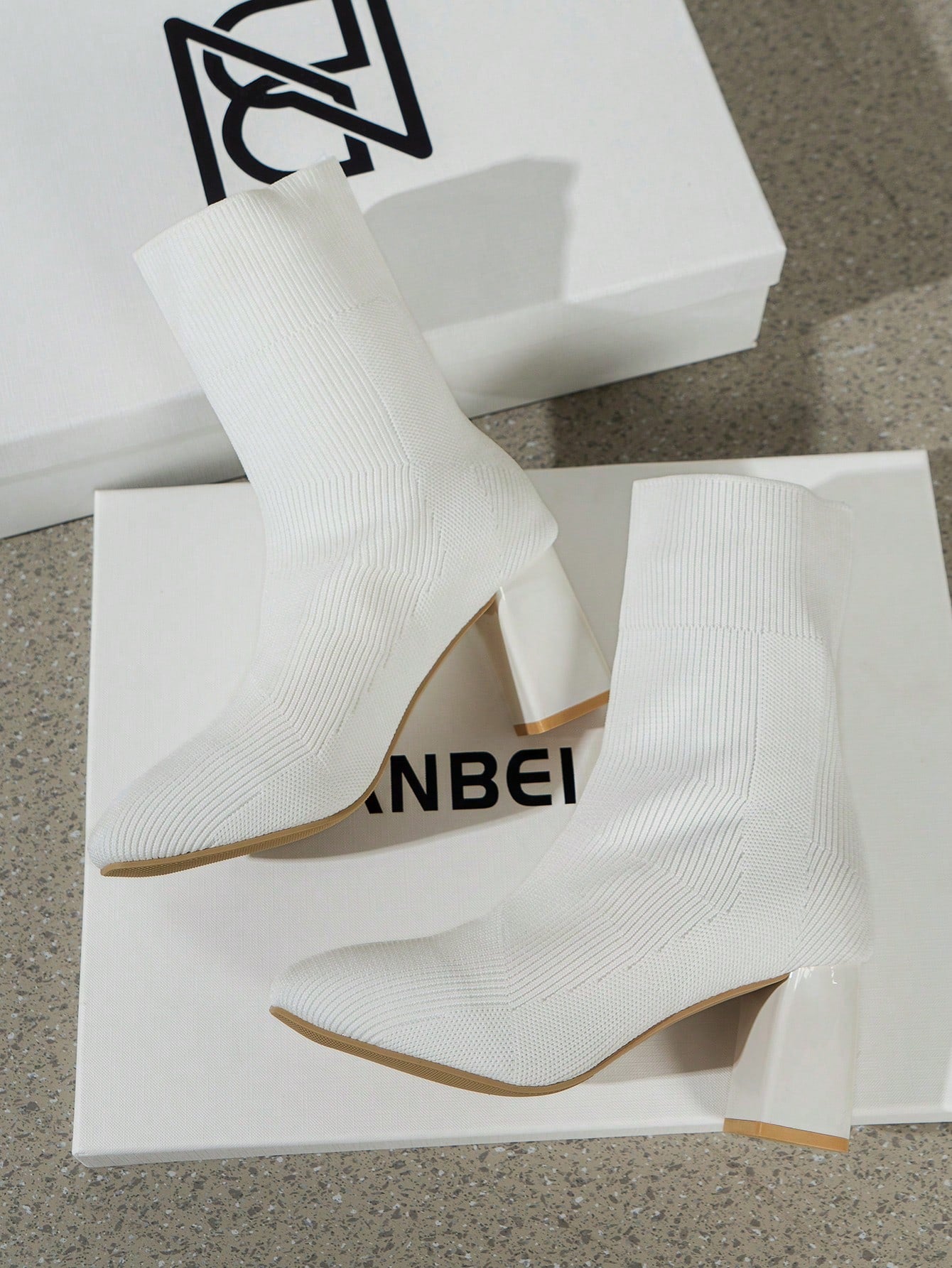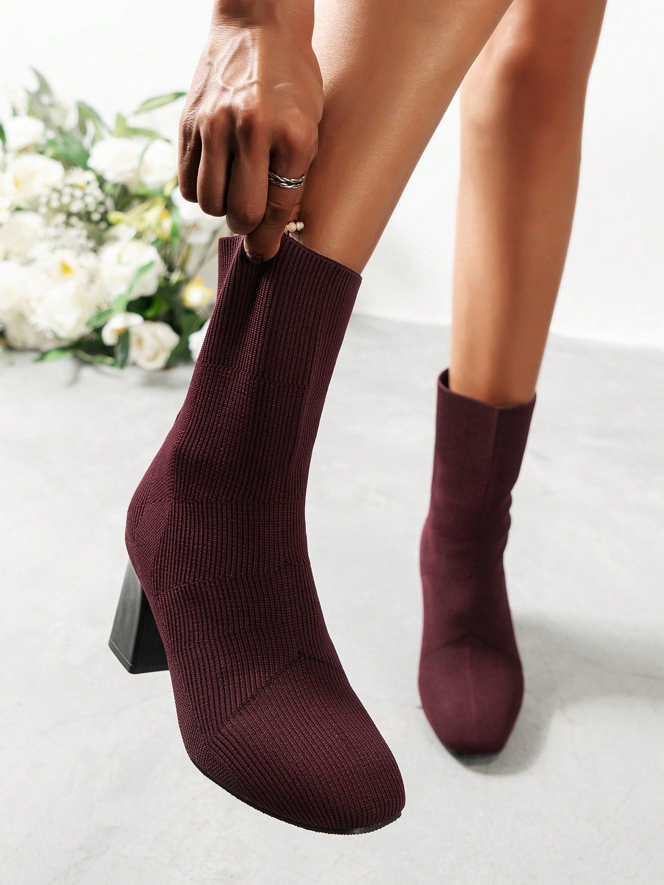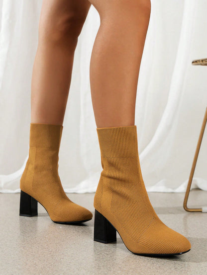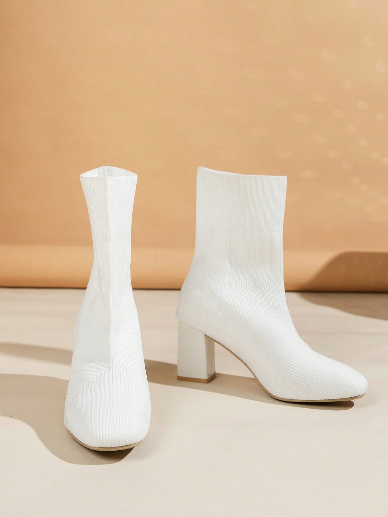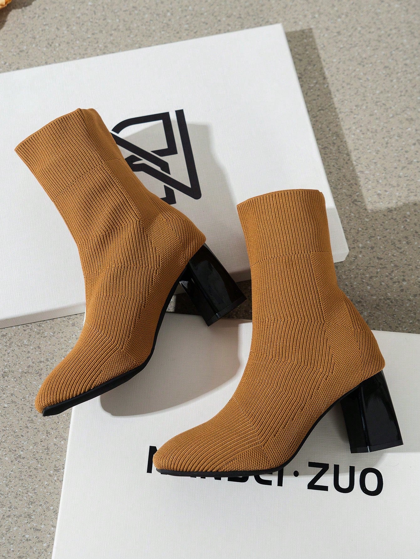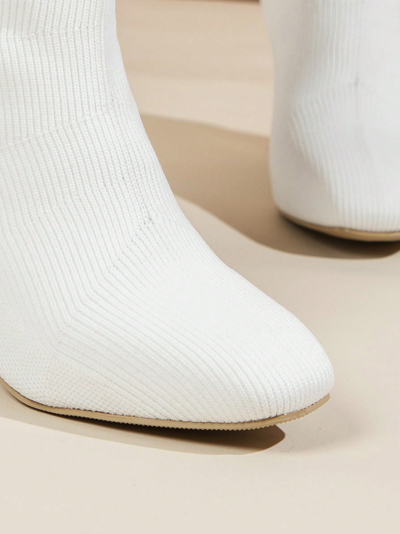 Women Point Toe Minimalist Chunky Heeled Slip-On Sock Boots