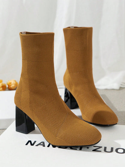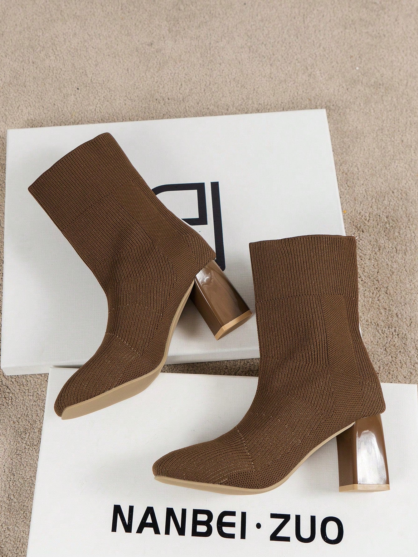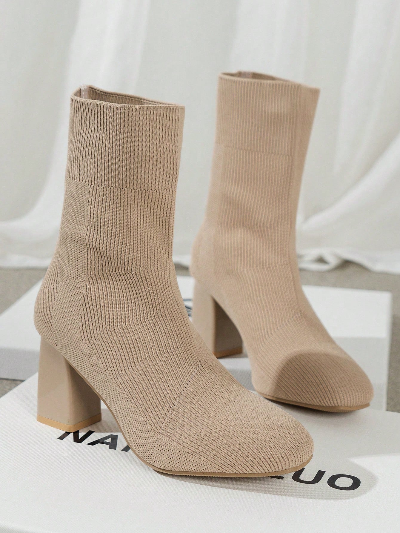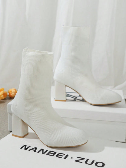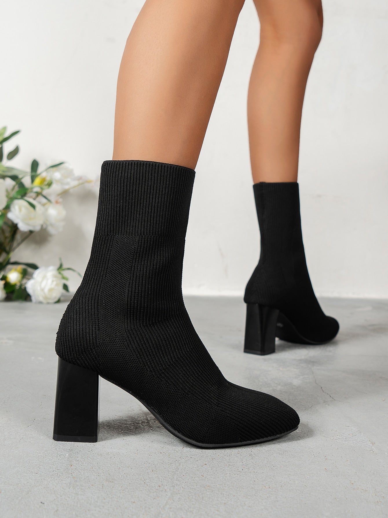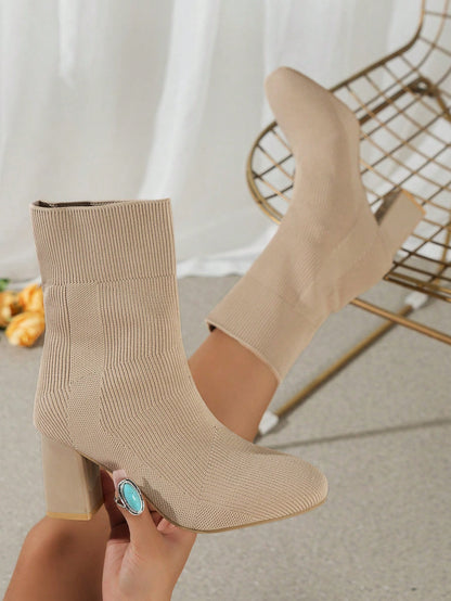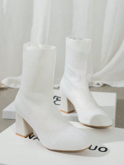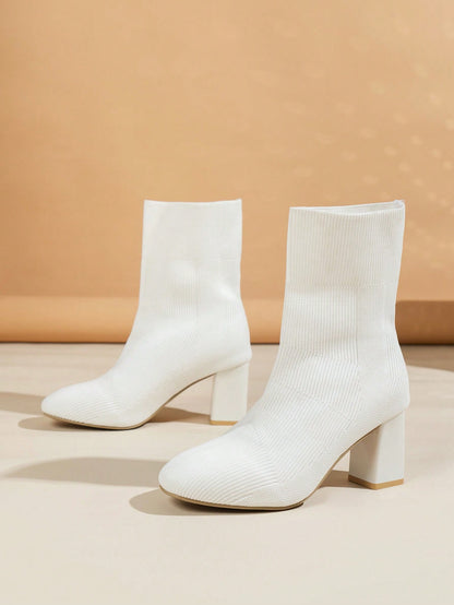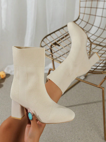 Women Point Toe Minimalist Chunky Heeled Slip-On Sock Boots