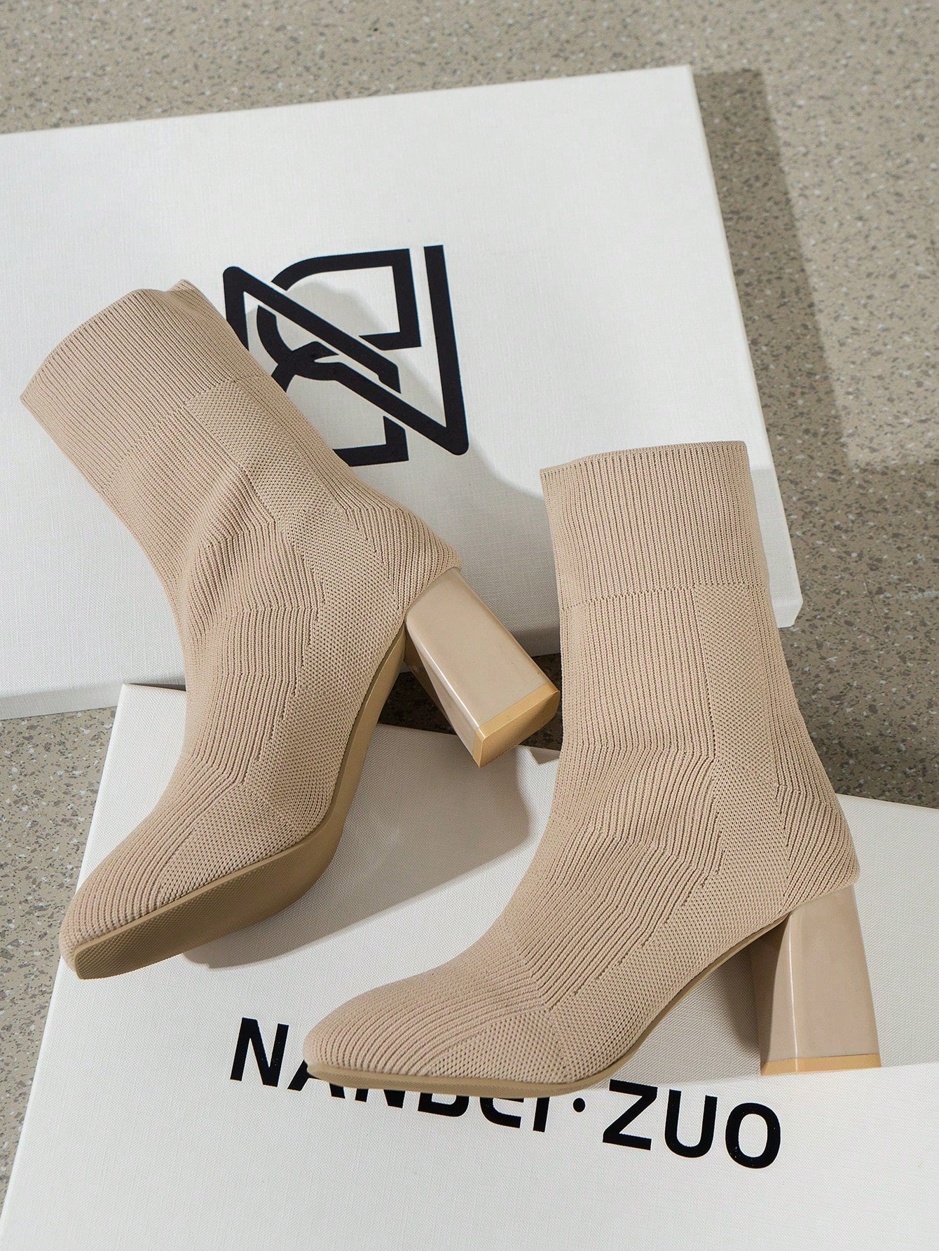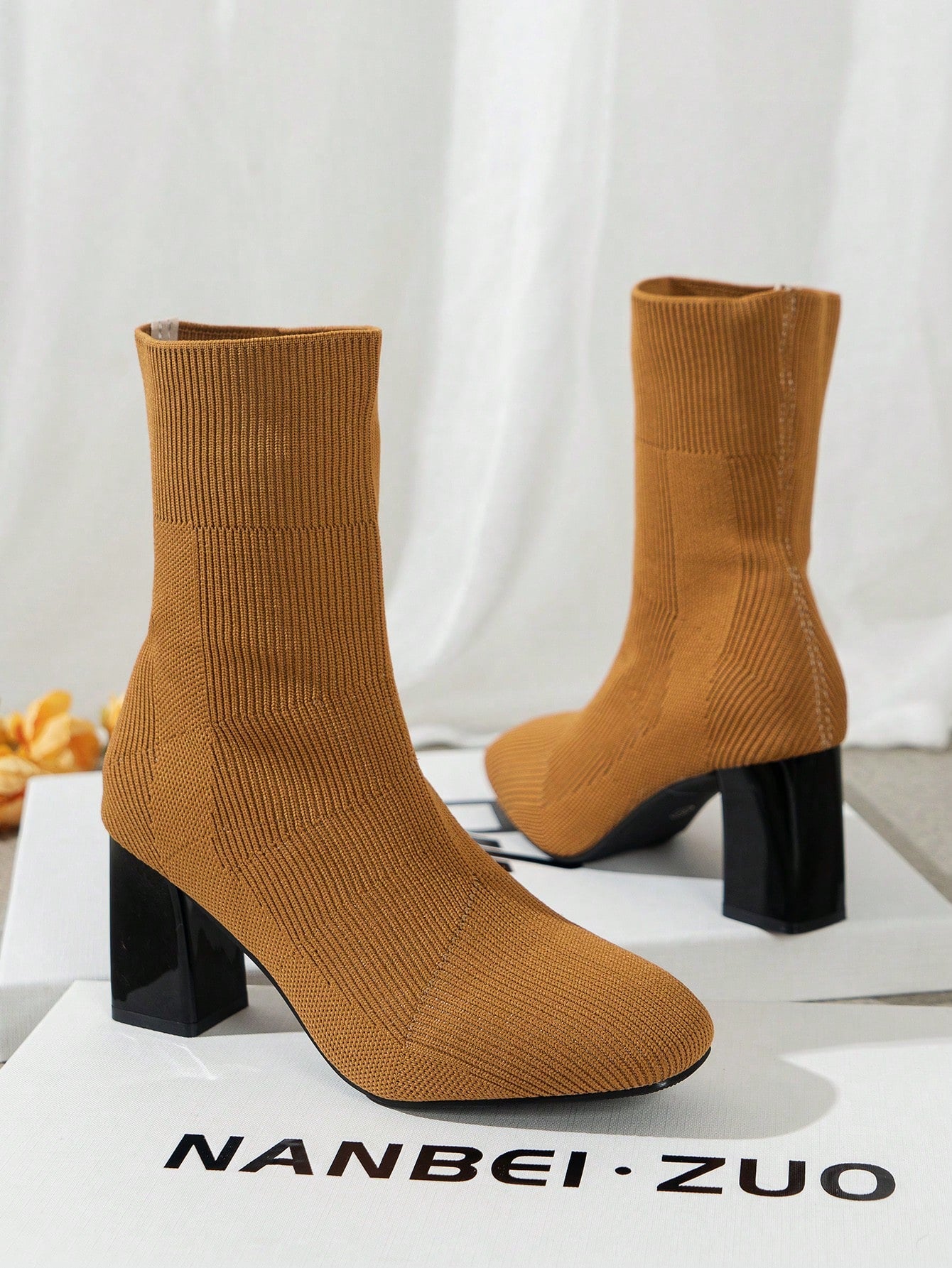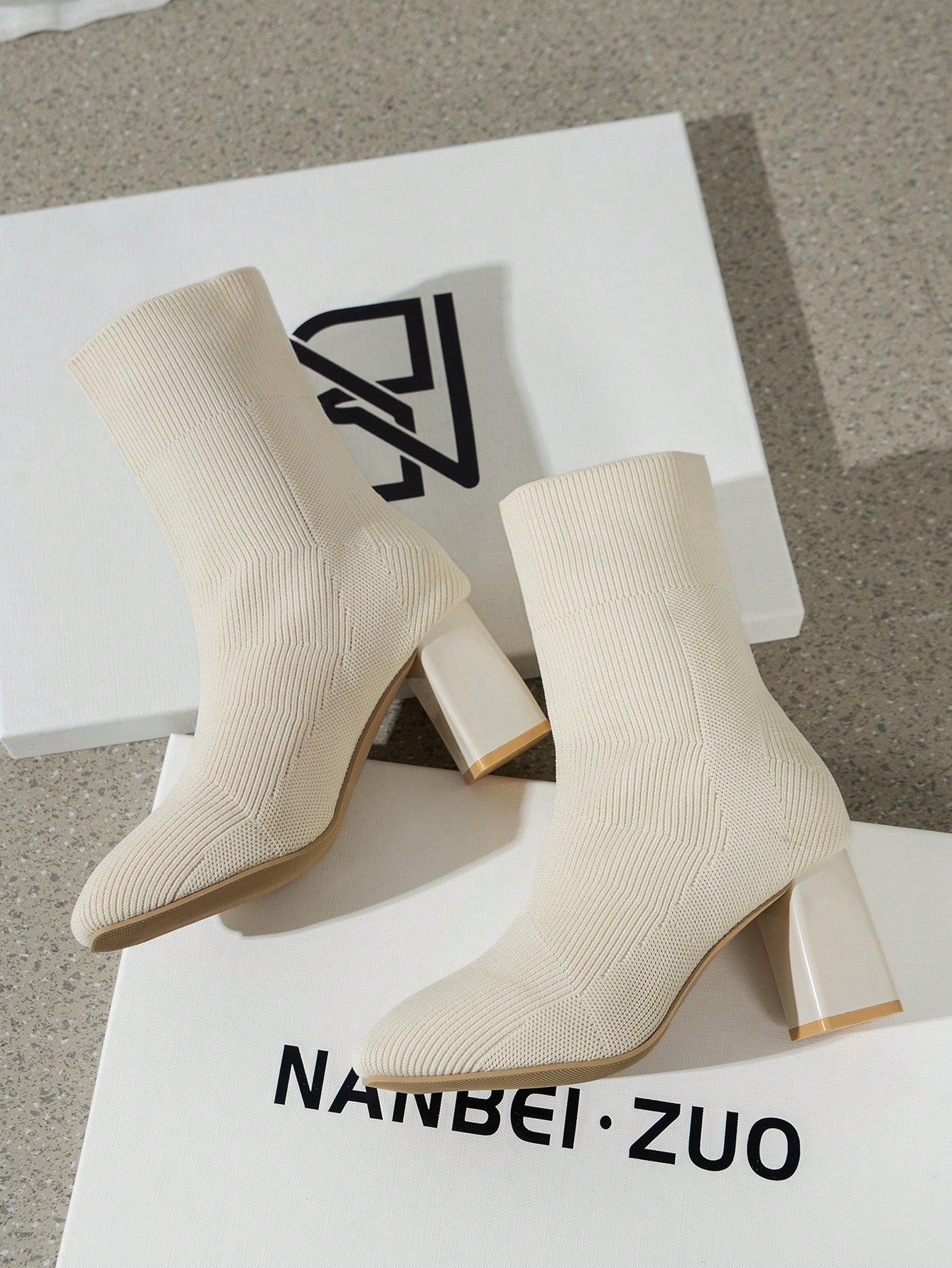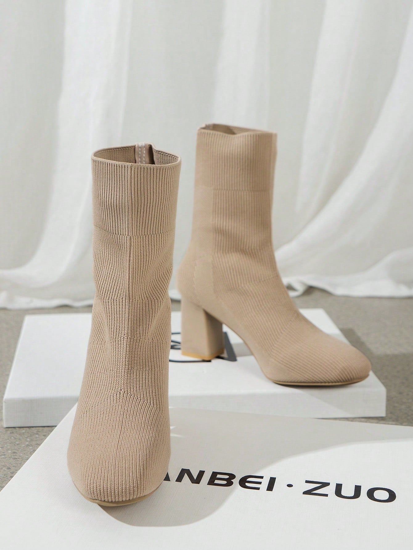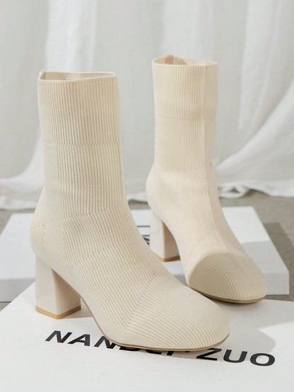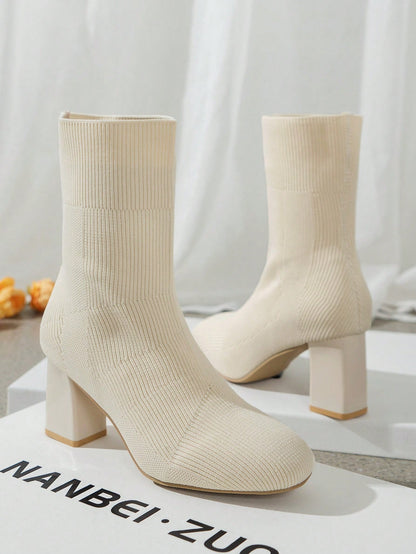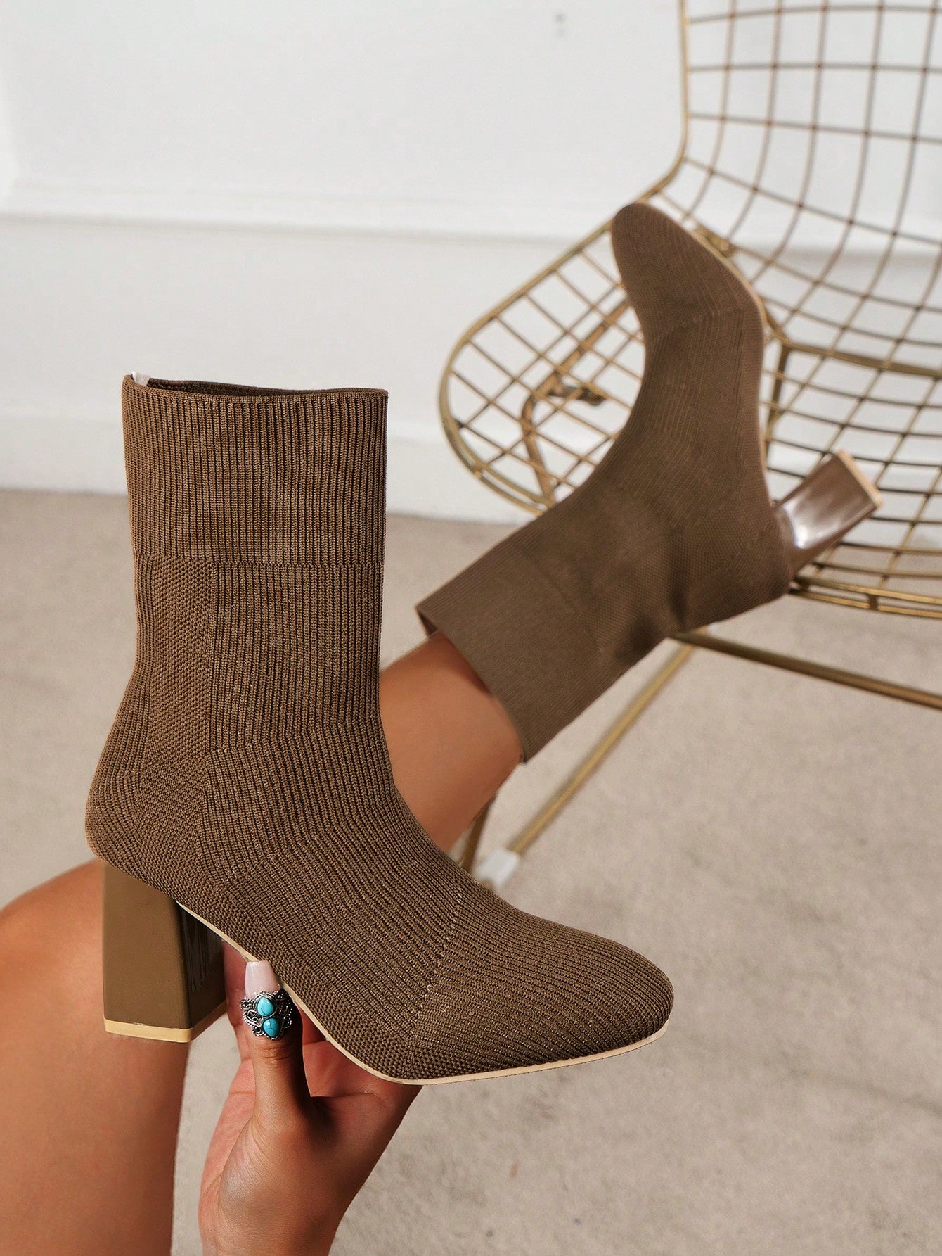 Women Point Toe Minimalist Chunky Heeled Slip-On Sock Boots