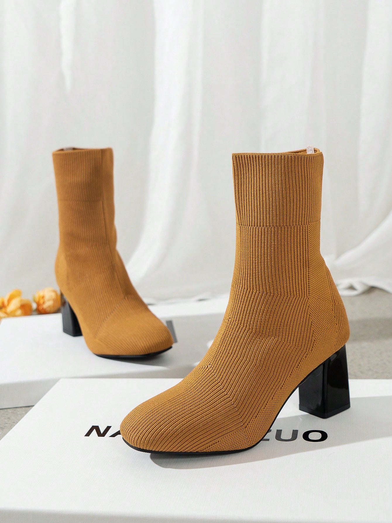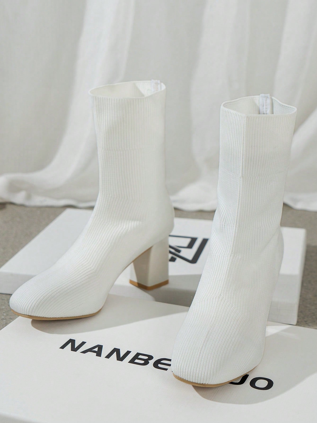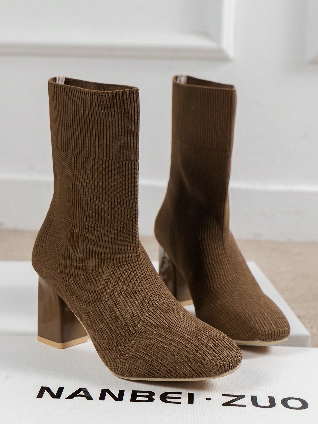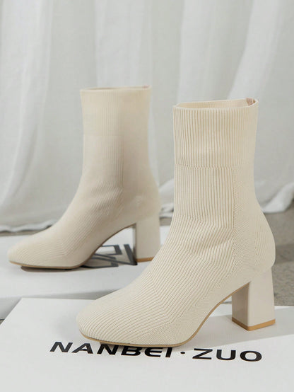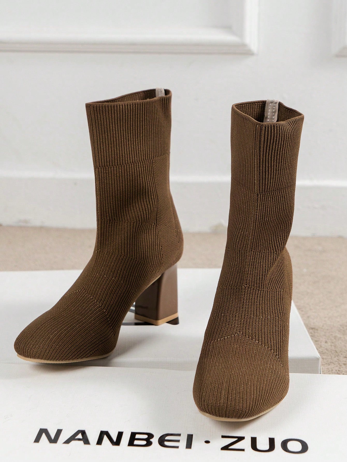 Women Point Toe Minimalist Chunky Heeled Slip-On Sock Boots