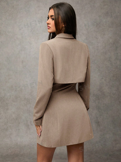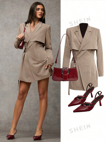 Women Spring And Autumn Casual Solid Color Lapel Wrap Blazer Dress Fall Women Clothes Winter Women Clothes Business Casual Women Business Women Clothes Office Wear Women Teacher Clothes