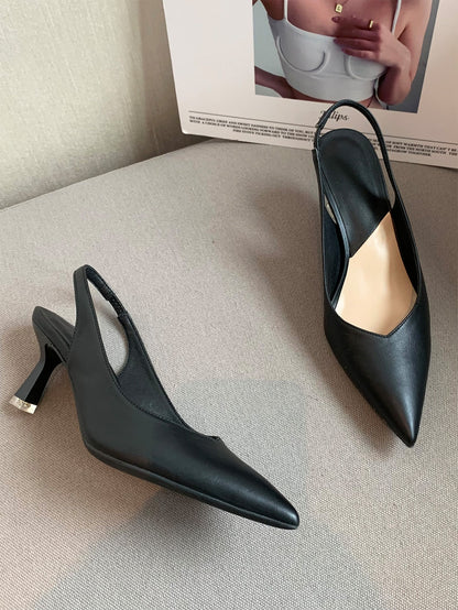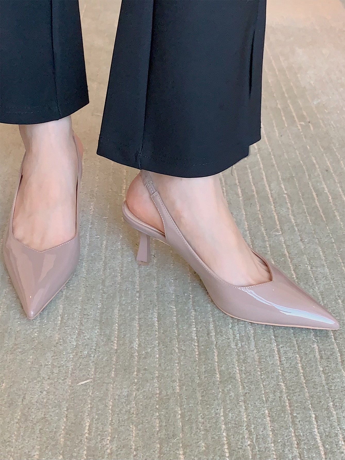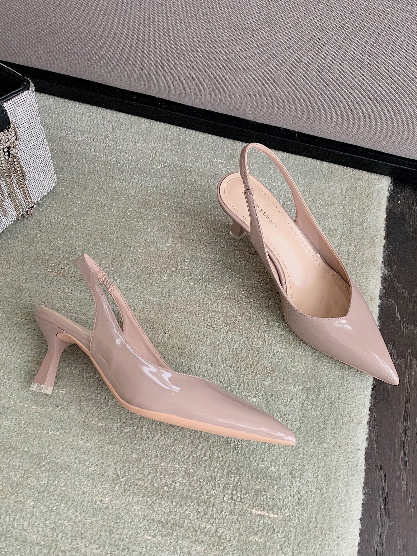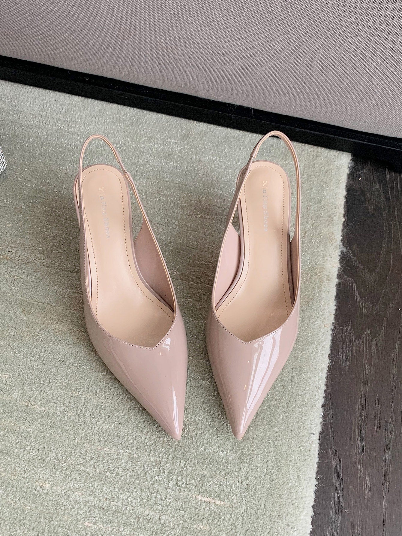 Women's Elegant Beige Solid Color Open Back Pointed-toe Pyramid Heel Stiletto Sandals