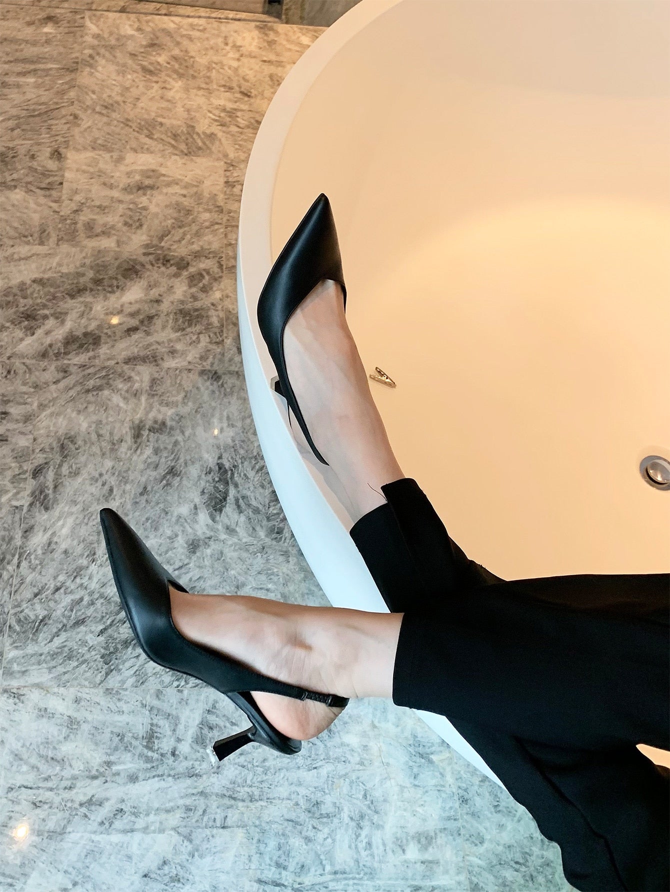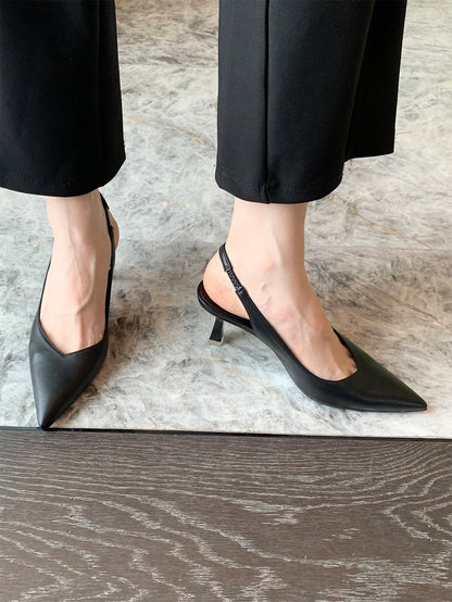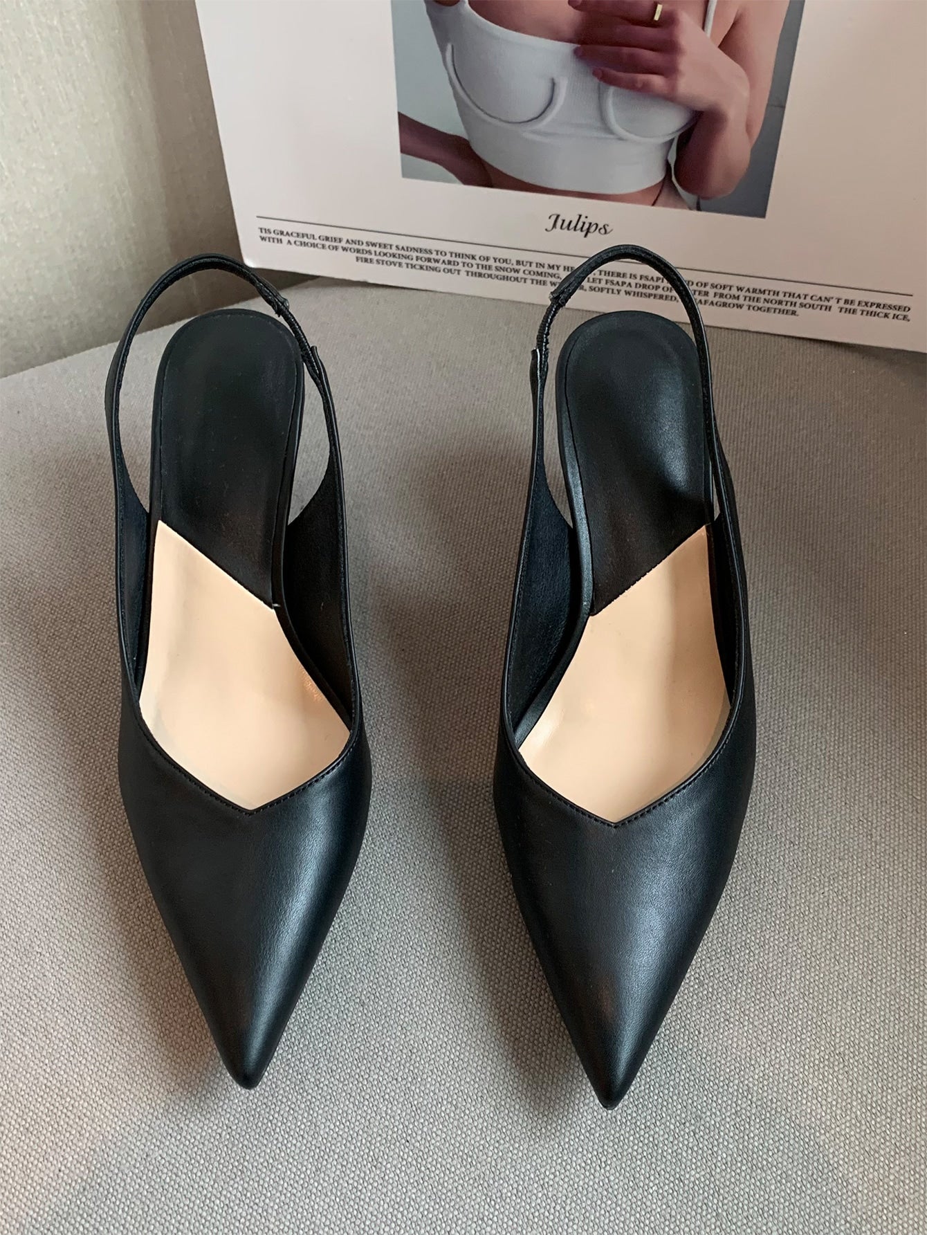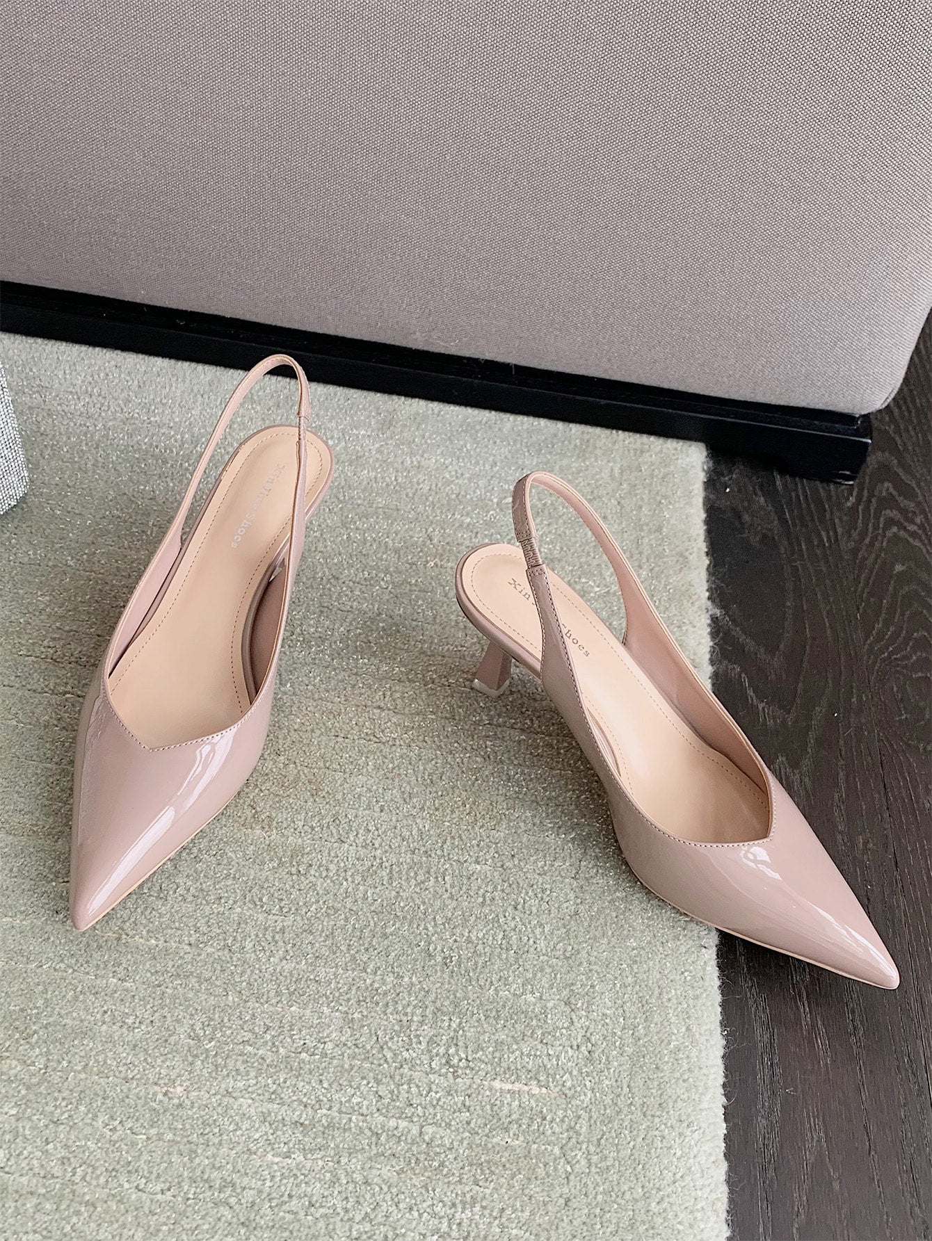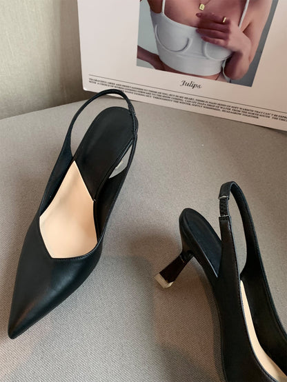 Women's Elegant Beige Solid Color Open Back Pointed-toe Pyramid Heel Stiletto Sandals