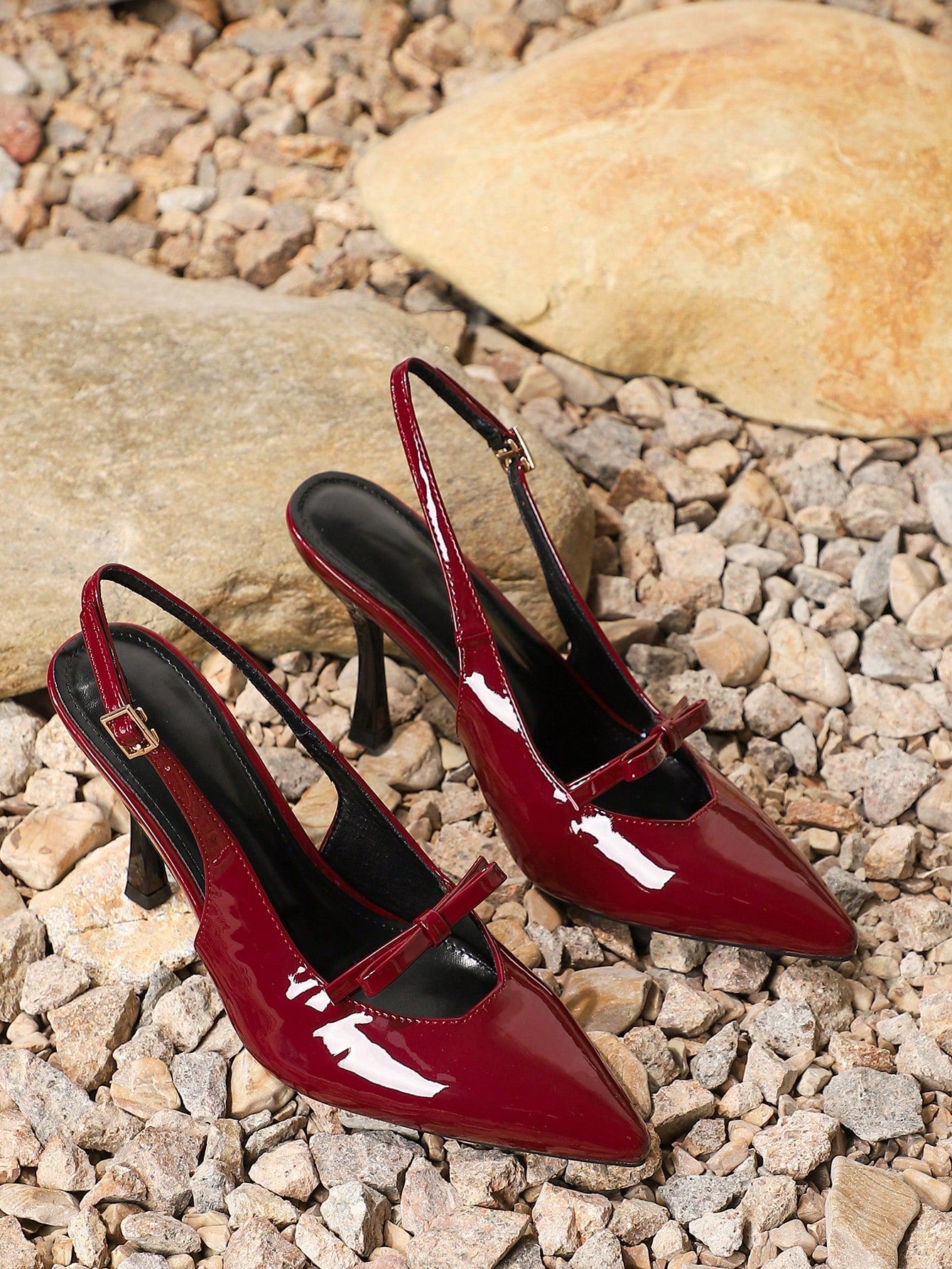 Women's Plus Size Fashion Stiletto High Heel Pointed Toe Pumps For Party And Everyday Wear, Wine Red