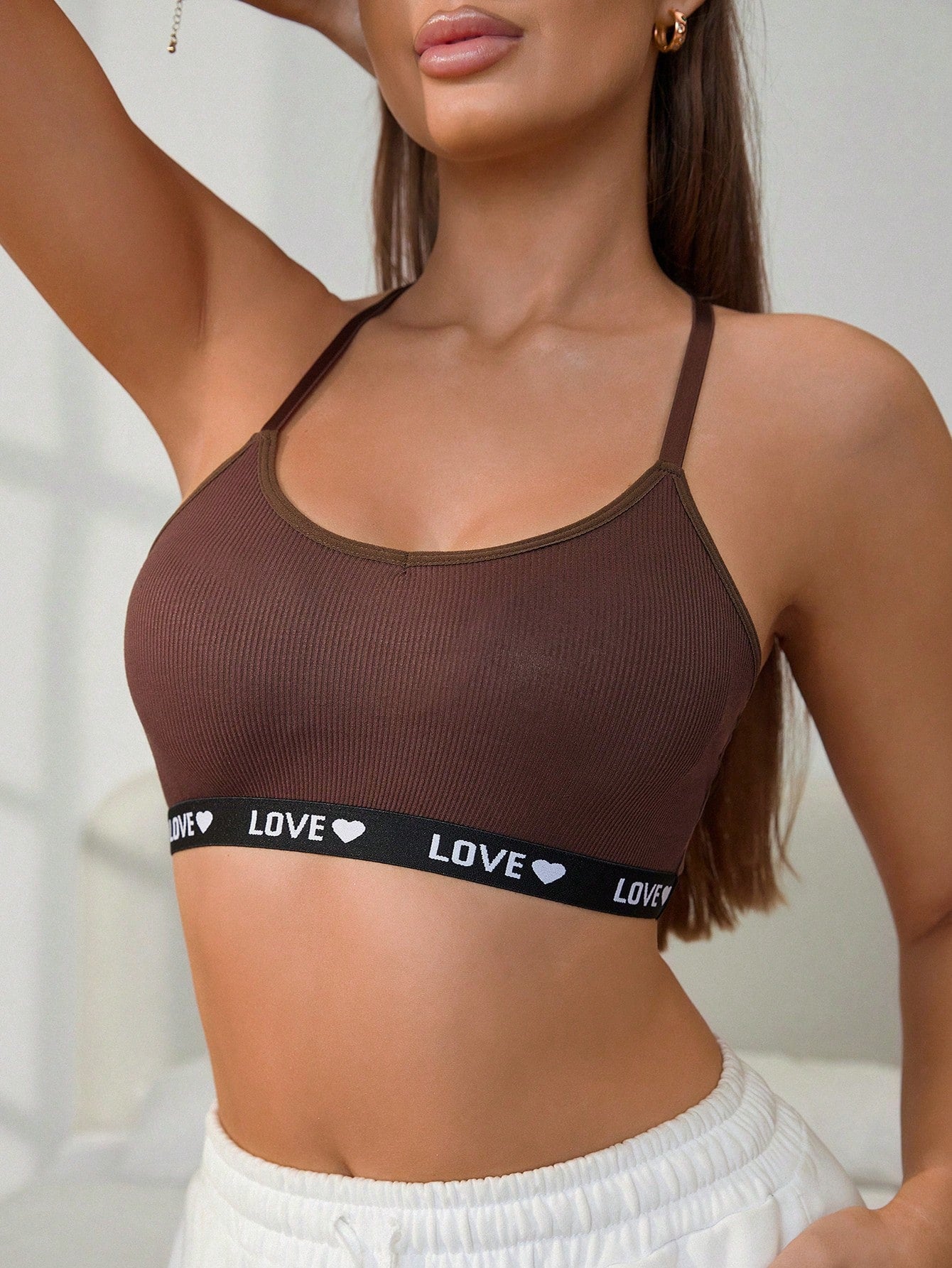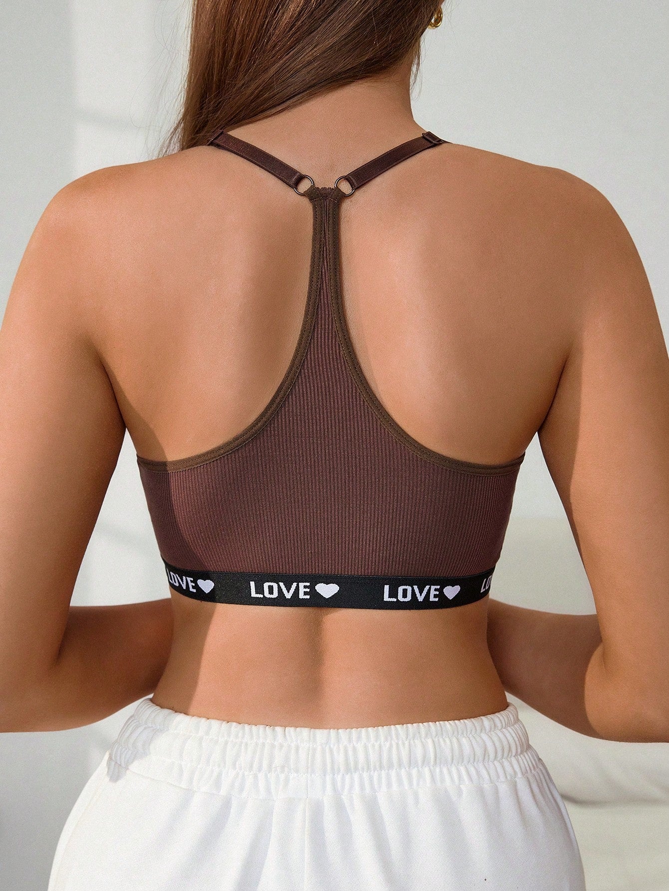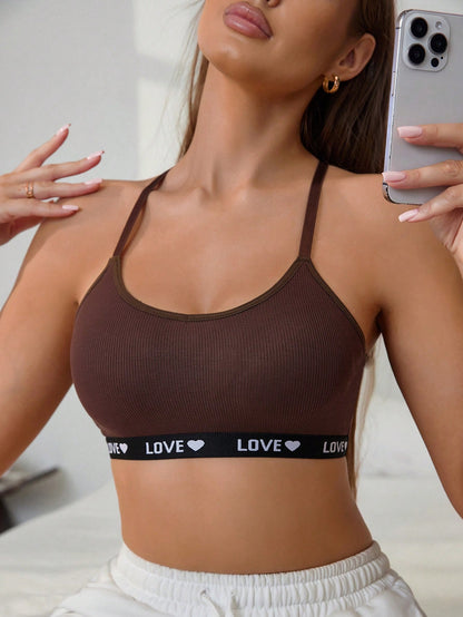Women's Solid Color Simple Style Graphic Back Letter Striped Comfortable Bra
