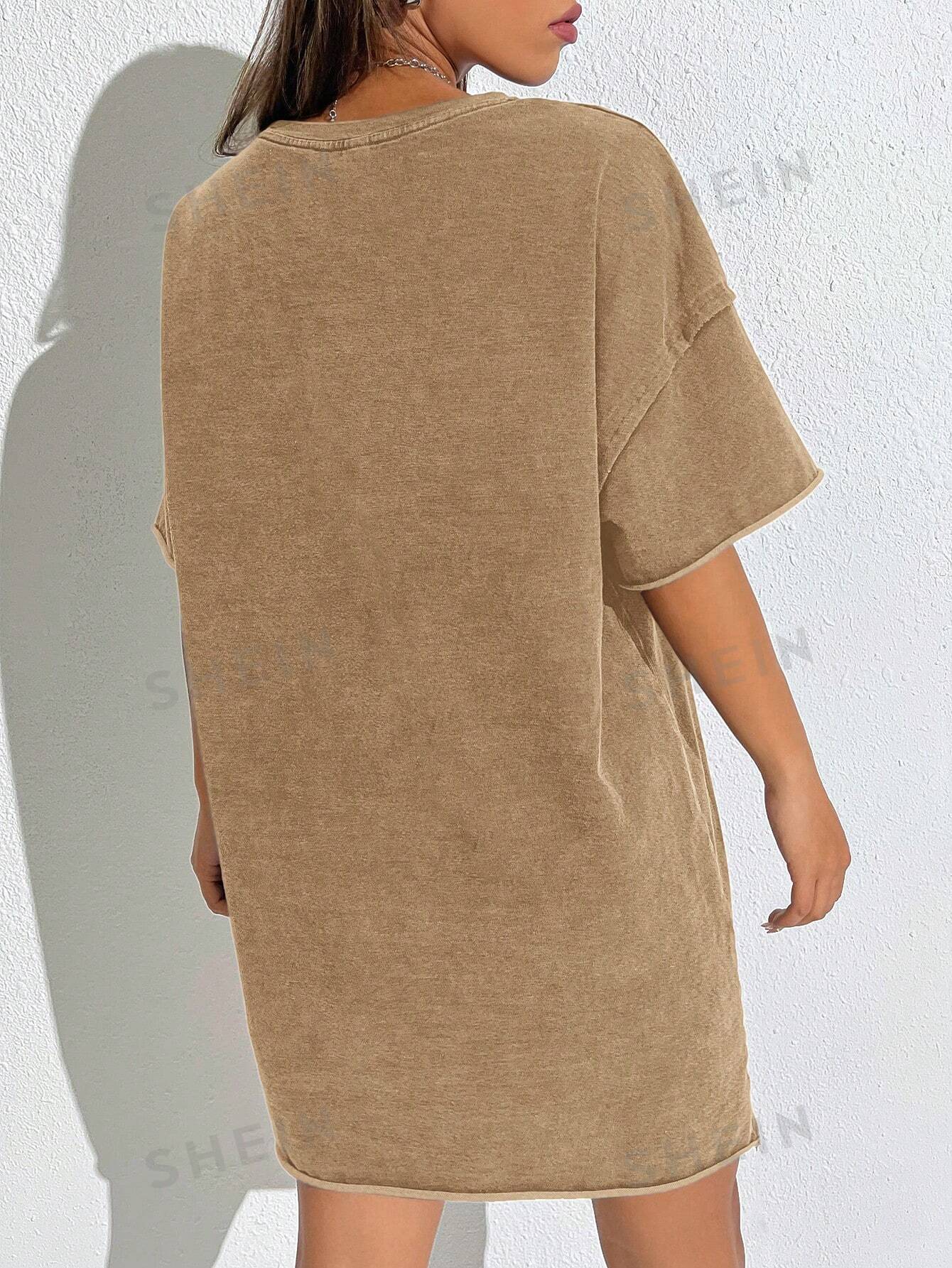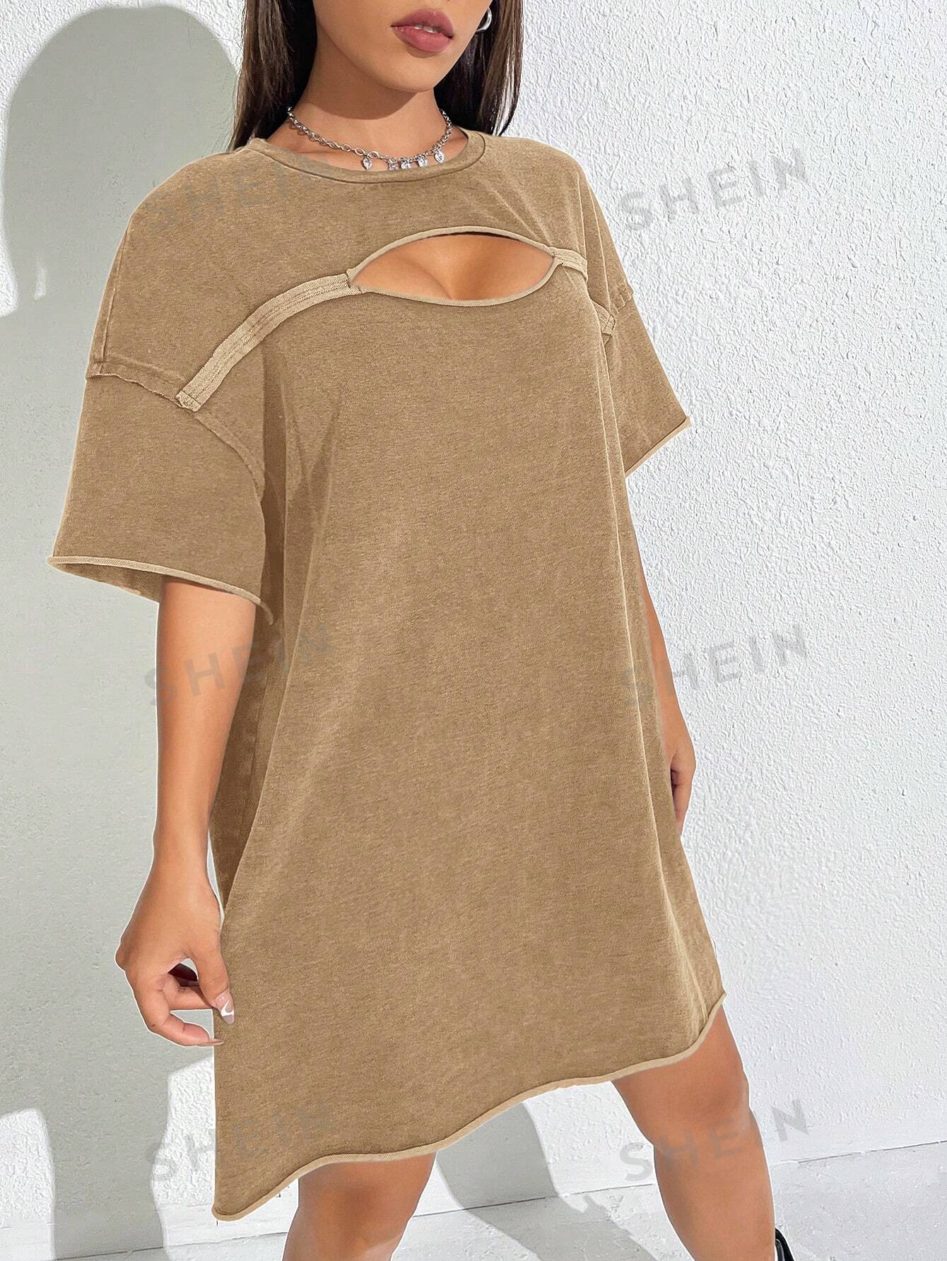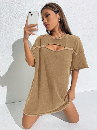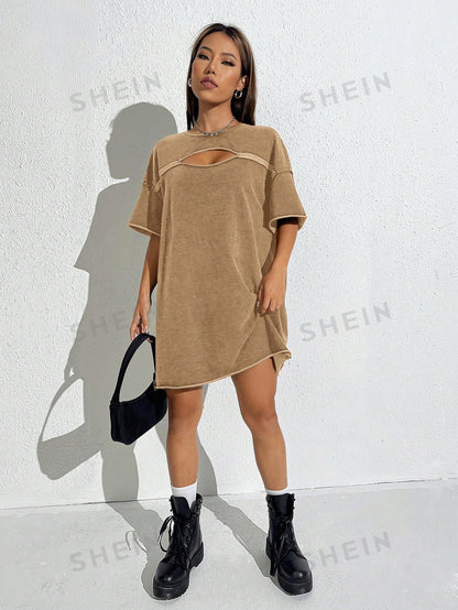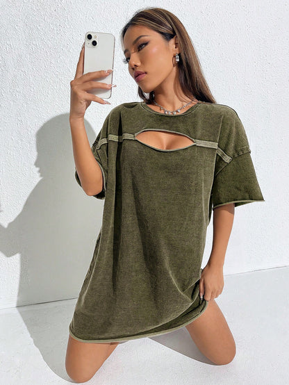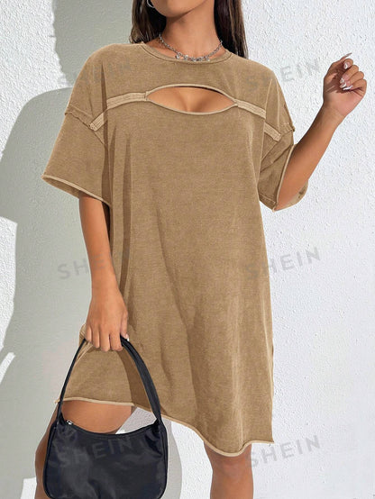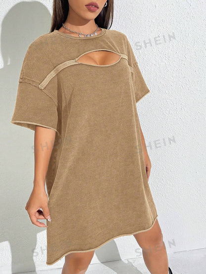 Women's Vintage Distressed Hollow Out Round Neck Short Sleeve Dress