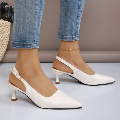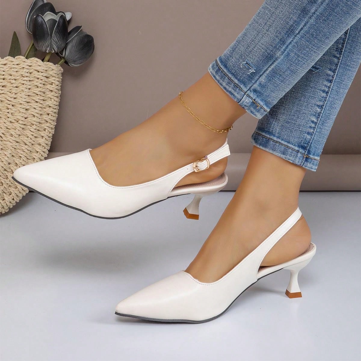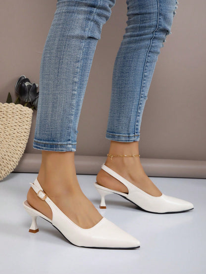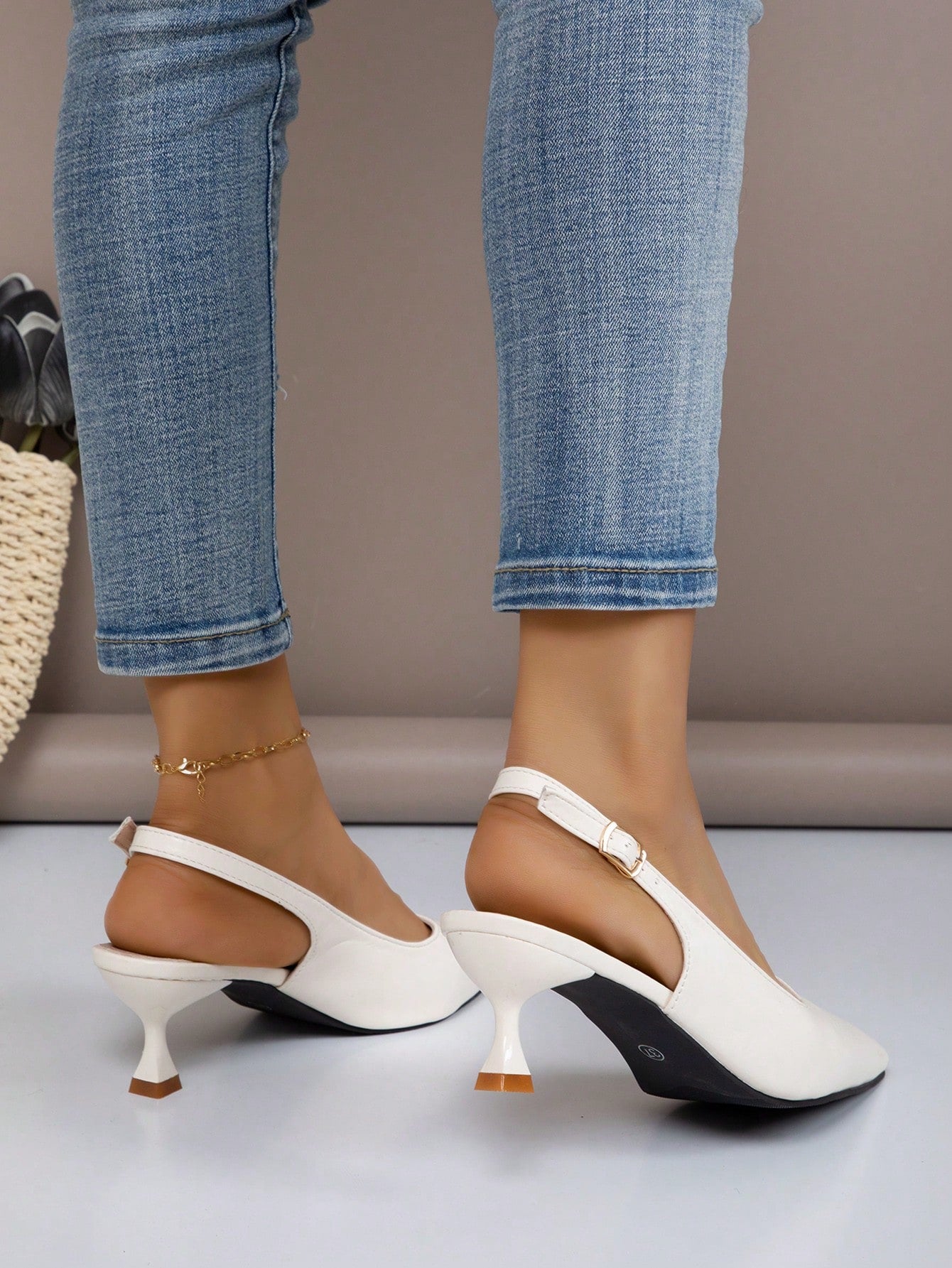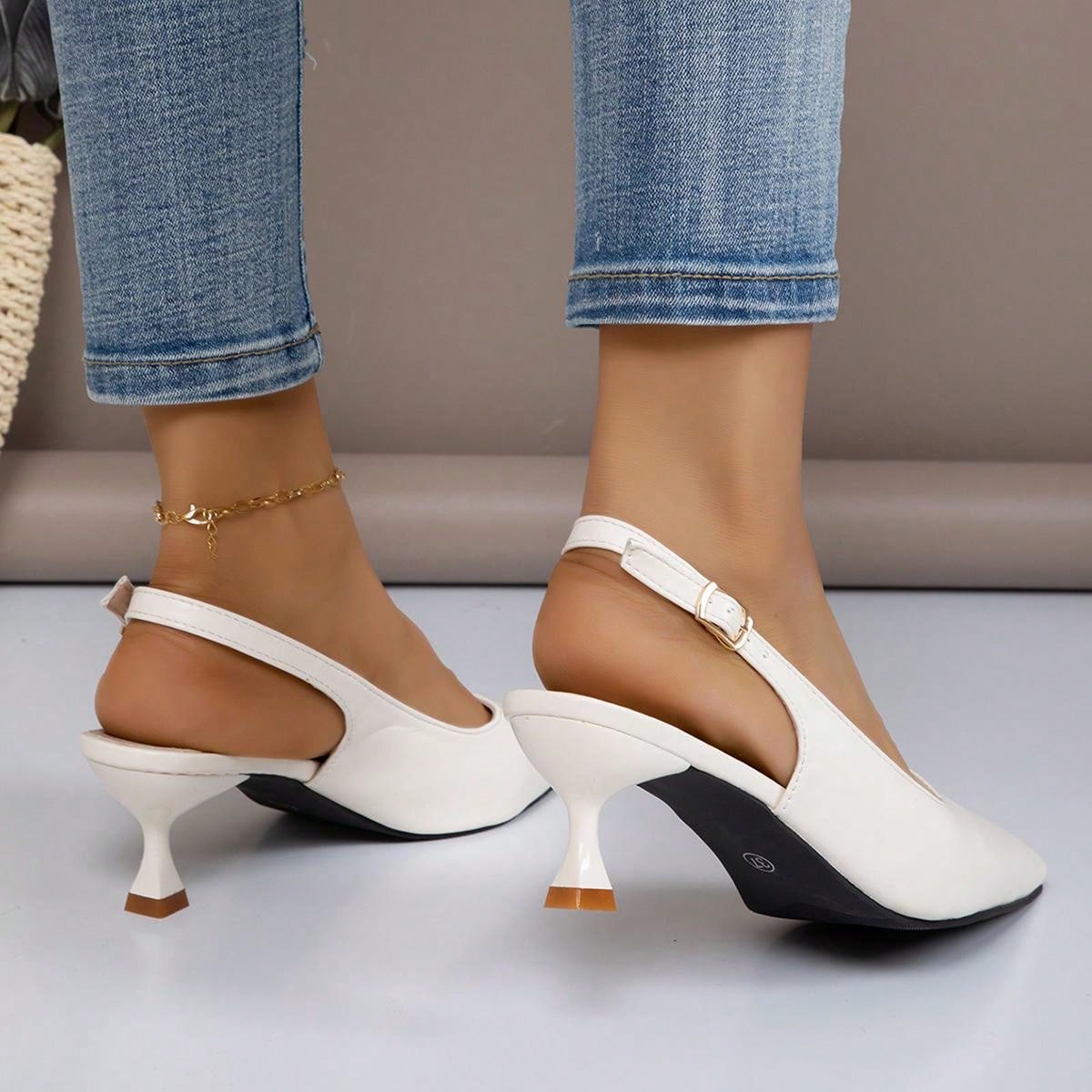 Women's White High Heeled Pointed Toe Pumps With Stiletto Heels, Patent Leather, Slip-On, Office Shoes (Size Runs Small)